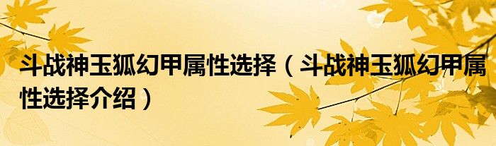 大家好,伊人來為大家解答以上問題。斗戰(zhàn)神玉狐幻甲屬性選擇,斗戰(zhàn)神玉狐幻甲屬性選擇介紹很多人還不知道,現(xiàn)在讓我們一起來看看吧!