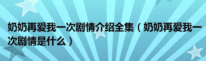 大家好,伊人來(lái)為大家解答以上問(wèn)題。奶奶再愛(ài)我一次劇情介紹全集,奶奶再愛(ài)我一次劇情是什么很多人還不知道,現(xiàn)在讓我們一起來(lái)看看吧!