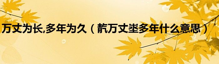 大家好,小生來為大家講解下。萬丈為長,多年為久,靔萬丈埊多年什么意思很多人還不知道,現(xiàn)在讓我們一起來看看吧!