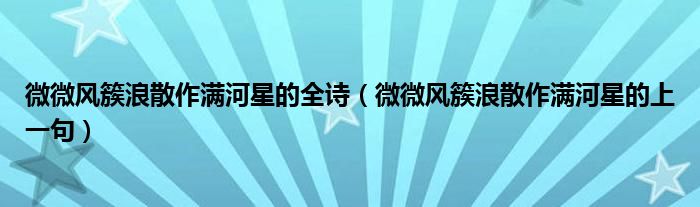 大家好,小生來為大家講解下。微微風簇浪散作滿河星的全詩,微微風簇浪散作滿河星的上一句很多人還不知道,現(xiàn)在讓我們一起來看看吧!