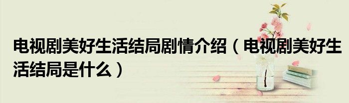 大家好,小生來為大家講解下。電視劇美好生活結(jié)局劇情介紹,電視劇美好生活結(jié)局是什么很多人還不知道,現(xiàn)在讓我們一起來看看吧!