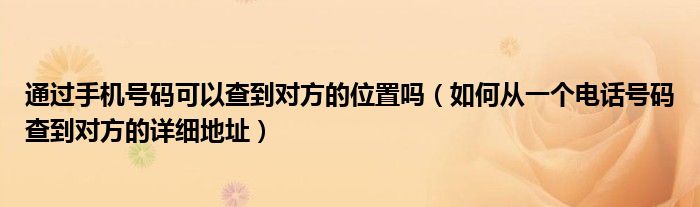 大家好,伊人來為大家解答以上問題。通過手機號碼可以查到對方的位置嗎,如何從一個電話號碼查到對方的詳細地址很多人還不知道,現(xiàn)在讓我們一起來看看吧!