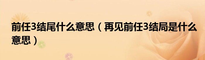 大家好,小生來(lái)為大家講解下。前任3結(jié)尾什么意思,再見前任3結(jié)局是什么意思很多人還不知道,現(xiàn)在讓我們一起來(lái)看看吧!