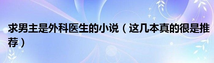 大家好,伊人來為大家解答以上問題。求男主是外科醫(yī)生的小說,這幾本真的很是推薦很多人還不知道,現(xiàn)在讓我們一起來看看吧!