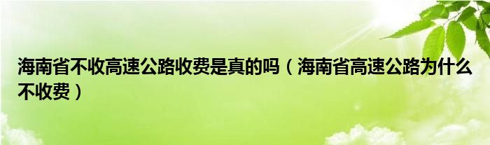 大家好,小生來為大家講解下。海南省不收高速公路收費(fèi)是真的嗎,海南省高速公路為什么不收費(fèi)很多人還不知道,現(xiàn)在讓我們一起來看看吧!