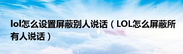 大家好,小生來(lái)為大家講解下。lol怎么設(shè)置屏蔽別人說(shuō)話,LOL怎么屏蔽所有人說(shuō)話很多人還不知道,現(xiàn)在讓我們一起來(lái)看看吧!