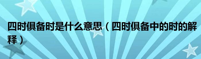 大家好,小生來為大家講解下。四時俱備時是什么意思,四時俱備中的時的解釋很多人還不知道,現(xiàn)在讓我們一起來看看吧!