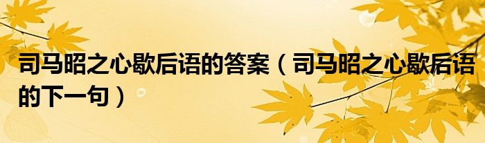 大家好,小生來為大家講解下。司馬昭之心歇后語的答案,司馬昭之心歇后語的下一句很多人還不知道,現(xiàn)在讓我們一起來看看吧!