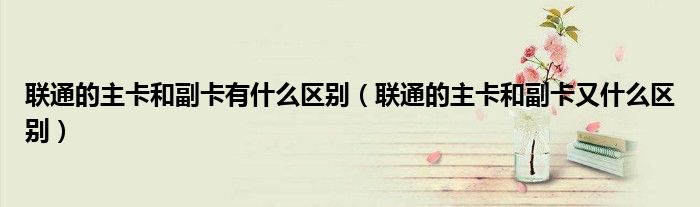 大家好,小生來(lái)為大家講解下。聯(lián)通的主卡和副卡有什么區(qū)別,聯(lián)通的主卡和副卡又什么區(qū)別很多人還不知道,現(xiàn)在讓我們一起來(lái)看看吧!