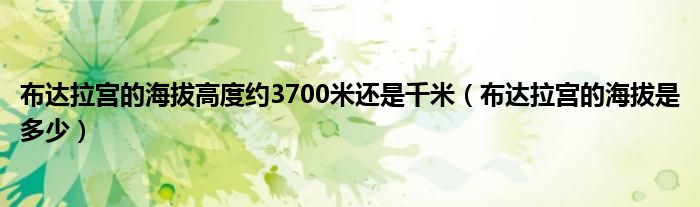 大家好,小生來(lái)為大家講解下。布達(dá)拉宮的海拔高度約3700米還是千米,布達(dá)拉宮的海拔是多少很多人還不知道,現(xiàn)在讓我們一起來(lái)看看吧!