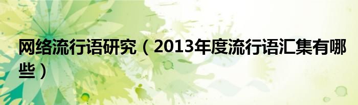 大家好,伊人來為大家解答以上問題。網(wǎng)絡(luò)流行語研究,2013年度流行語匯集有哪些很多人還不知道,現(xiàn)在讓我們一起來看看吧!
