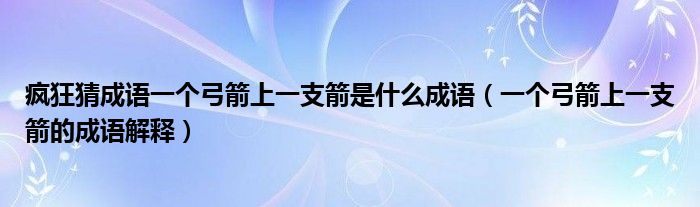 大家好,伊人來為大家解答以上問題。瘋狂猜成語一個(gè)弓箭上一支箭是什么成語,一個(gè)弓箭上一支箭的成語解釋很多人還不知道,現(xiàn)在讓我們一起來看看吧!