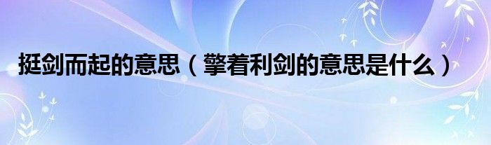大家好,小生來為大家講解下。挺劍而起的意思,擎著利劍的意思是什么很多人還不知道,現(xiàn)在讓我們一起來看看吧!
