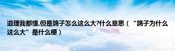 大家好,小生來(lái)為大家講解下。道理我都懂,但是鴿子怎么這么大?什么意思,“鴿子為什么這么大”是什么梗很多人還不知道,現(xiàn)在讓我們一起來(lái)看看吧!