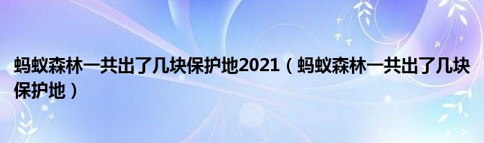 大家好,小生來(lái)為大家講解下。螞蟻森林一共出了幾塊保護(hù)地2021,螞蟻森林一共出了幾塊保護(hù)地很多人還不知道,現(xiàn)在讓我們一起來(lái)看看吧!