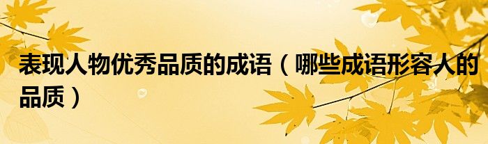 大家好,伊人來為大家解答以上問題。表現(xiàn)人物優(yōu)秀品質(zhì)的成語,哪些成語形容人的品質(zhì)很多人還不知道,現(xiàn)在讓我們一起來看看吧!