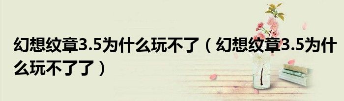 大家好,小生來為大家講解下?;孟爰y章3.5為什么玩不了,幻想紋章3.5為什么玩不了了很多人還不知道,現(xiàn)在讓我們一起來看看吧!