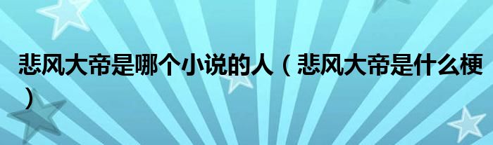 大家好,小生來(lái)為大家講解下。悲風(fēng)大帝是哪個(gè)小說(shuō)的人,悲風(fēng)大帝是什么梗很多人還不知道,現(xiàn)在讓我們一起來(lái)看看吧!
