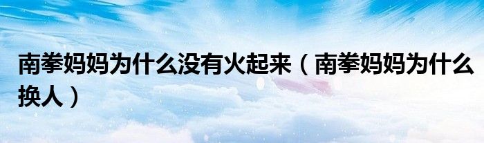 大家好,小生來為大家講解下。南拳媽媽為什么沒有火起來,南拳媽媽為什么換人很多人還不知道,現(xiàn)在讓我們一起來看看吧!