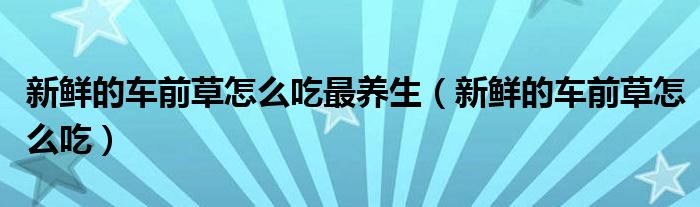 大家好,小生來為大家講解下。新鮮的車前草怎么吃最養(yǎng)生,新鮮的車前草怎么吃很多人還不知道,現(xiàn)在讓我們一起來看看吧!