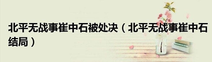 大家好,小生來為大家講解下。北平無戰(zhàn)事崔中石被處決,北平無戰(zhàn)事崔中石結(jié)局很多人還不知道,現(xiàn)在讓我們一起來看看吧!