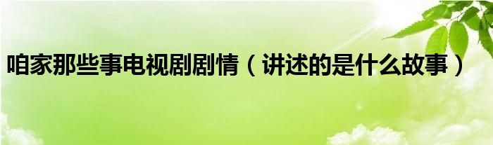 大家好,伊人來為大家解答以上問題。咱家那些事電視劇劇情,講述的是什么故事很多人還不知道,現(xiàn)在讓我們一起來看看吧!