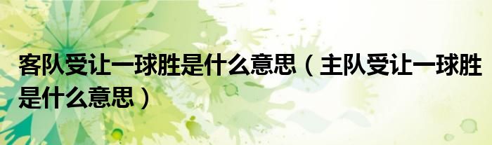 大家好,小生來為大家講解下??完?duì)受讓一球勝是什么意思,主隊(duì)受讓一球勝是什么意思很多人還不知道,現(xiàn)在讓我們一起來看看吧!