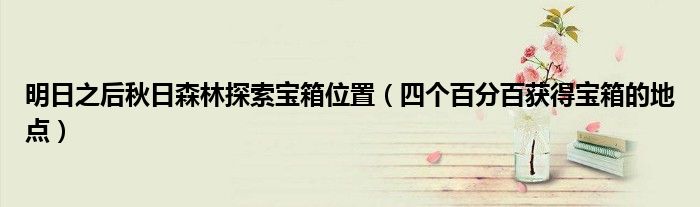 大家好,伊人來(lái)為大家解答以上問(wèn)題。明日之后秋日森林探索寶箱位置,四個(gè)百分百獲得寶箱的地點(diǎn)很多人還不知道,現(xiàn)在讓我們一起來(lái)看看吧!