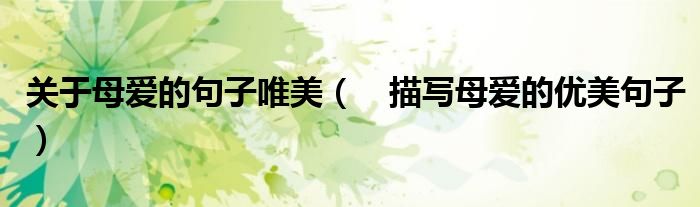 大家好,伊人來為大家解答以上問題。關(guān)于母愛的句子唯美, 描寫母愛的優(yōu)美句子很多人還不知道,現(xiàn)在讓我們一起來看看吧!