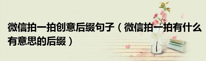 大家好,伊人來(lái)為大家解答以上問(wèn)題。微信拍一拍創(chuàng)意后綴句子,微信拍一拍有什么有意思的后綴很多人還不知道,現(xiàn)在讓我們一起來(lái)看看吧!