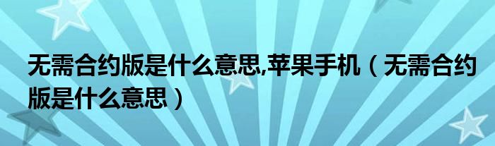 大家好,小生來為大家講解下。無需合約版是什么意思,蘋果手機,無需合約版是什么意思很多人還不知道,現(xiàn)在讓我們一起來看看吧!