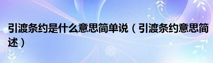 大家好,伊人來為大家解答以上問題。引渡條約是什么意思簡單說,引渡條約意思簡述很多人還不知道,現(xiàn)在讓我們一起來看看吧!