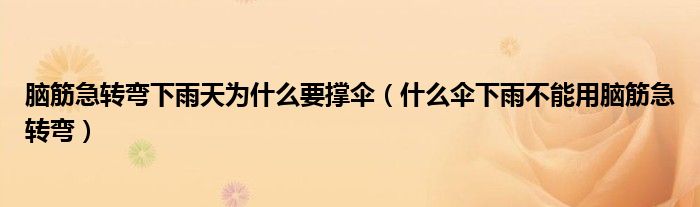 大家好,小生來為大家講解下。腦筋急轉(zhuǎn)彎下雨天為什么要撐傘,什么傘下雨不能用腦筋急轉(zhuǎn)彎很多人還不知道,現(xiàn)在讓我們一起來看看吧!