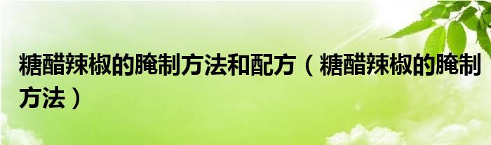 大家好,小生來(lái)為大家講解下。糖醋辣椒的腌制方法和配方,糖醋辣椒的腌制方法很多人還不知道,現(xiàn)在讓我們一起來(lái)看看吧!