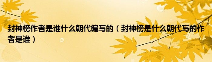 大家好,小生來為大家講解下。封神榜作者是誰什么朝代編寫的,封神榜是什么朝代寫的作者是誰很多人還不知道,現(xiàn)在讓我們一起來看看吧!