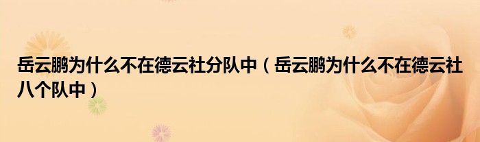 大家好,小生來為大家講解下。岳云鵬為什么不在德云社分隊中,岳云鵬為什么不在德云社八個隊中很多人還不知道,現(xiàn)在讓我們一起來看看吧!