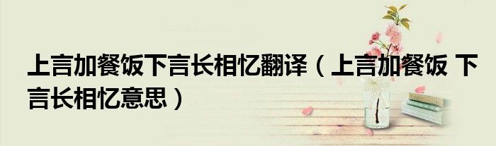 大家好,小生來為大家講解下。上言加餐飯下言長相憶翻譯,上言加餐飯 下言長相憶意思很多人還不知道,現(xiàn)在讓我們一起來看看吧!
