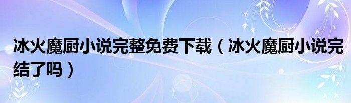 大家好,小生來為大家講解下。冰火魔廚小說完整免費下載,冰火魔廚小說完結(jié)了嗎很多人還不知道,現(xiàn)在讓我們一起來看看吧!