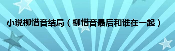 大家好,小生來(lái)為大家講解下。小說(shuō)柳惜音結(jié)局,柳惜音最后和誰(shuí)在一起很多人還不知道,現(xiàn)在讓我們一起來(lái)看看吧!