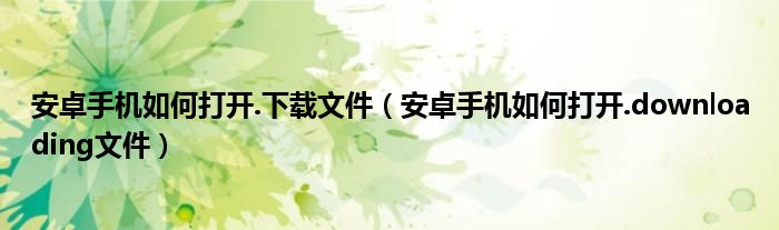 大家好,小生來為大家講解下。安卓手機(jī)如何打開.下載文件,安卓手機(jī)如何打開.downloading文件很多人還不知道,現(xiàn)在讓我們一起來看看吧!