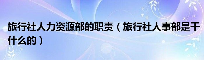 大家好,小生來為大家講解下。旅行社人力資源部的職責(zé),旅行社人事部是干什么的很多人還不知道,現(xiàn)在讓我們一起來看看吧!
