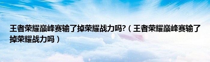 大家好,小生來為大家講解下。王者榮耀巔峰賽輸了掉榮耀戰(zhàn)力嗎?,王者榮耀巔峰賽輸了掉榮耀戰(zhàn)力嗎很多人還不知道,現(xiàn)在讓我們一起來看看吧!
