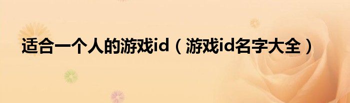 大家好,伊人來為大家解答以上問題。適合一個人的游戲id,游戲id名字大全很多人還不知道,現(xiàn)在讓我們一起來看看吧!