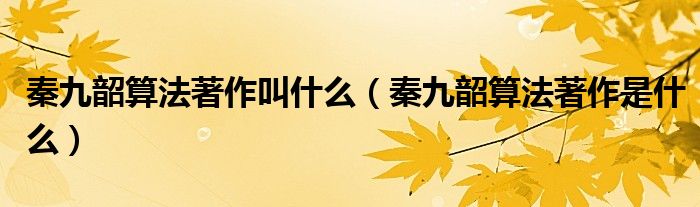 大家好,小生來為大家講解下。秦九韶算法著作叫什么,秦九韶算法著作是什么很多人還不知道,現在讓我們一起來看看吧!