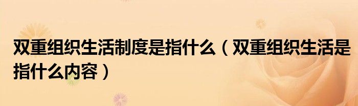 大家好,小生來為大家講解下。雙重組織生活制度是指什么,雙重組織生活是指什么內(nèi)容很多人還不知道,現(xiàn)在讓我們一起來看看吧!