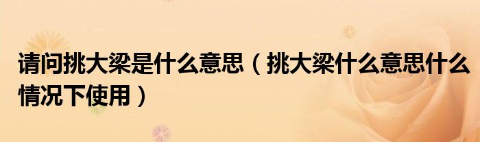 大家好,小生來為大家講解下。請問挑大梁是什么意思,挑大梁什么意思什么情況下使用很多人還不知道,現(xiàn)在讓我們一起來看看吧!