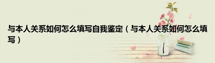 大家好,小生來為大家講解下。與本人關(guān)系如何怎么填寫自我鑒定,與本人關(guān)系如何怎么填寫很多人還不知道,現(xiàn)在讓我們一起來看看吧!