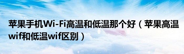 大家好,小生來為大家講解下。蘋果手機(jī)Wi-Fi高溫和低溫那個(gè)好,蘋果高溫wif和低溫wif區(qū)別很多人還不知道,現(xiàn)在讓我們一起來看看吧!