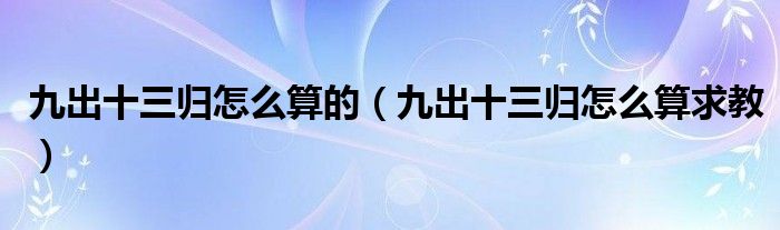 大家好,小生來為大家講解下。九出十三歸怎么算的,九出十三歸怎么算求教很多人還不知道,現(xiàn)在讓我們一起來看看吧!