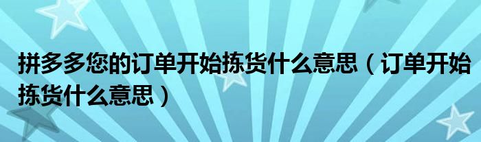 大家好,小生來為大家講解下。拼多多您的訂單開始揀貨什么意思,訂單開始揀貨什么意思很多人還不知道,現(xiàn)在讓我們一起來看看吧!